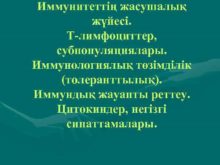 Иммунитеттің жасушалық жүйесі Т-лимфоциттер субпопуляциялары Иммунологиялық төзімділік толеранттылық