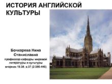 ИСТОРИЯ АНГЛИЙСКОЙ КУЛЬТУРЫ Бочкарева Нина Станиславна профессор кафедры