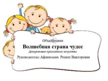 Объединение Волшебная страна чудес Декоративно-прикладного искусства Руководитель Афанасьева