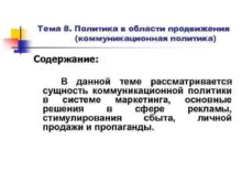 Тема 8 Политика в области продвижения коммуникационная политика