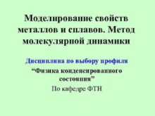 Моделирование свойств металлов и сплавов Метод молекулярной динамики
