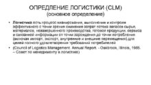 ОПРЕДЛЕНИЕ ЛОГИСТИКИ CLM основное определение Логистика есть