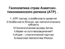 Геополитика стран Азиатскотихоокеанского региона АТР 1 АТР состав