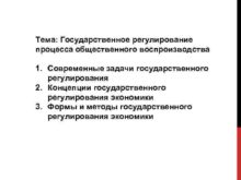 Тема Государственное регулирование процесса общественного воспроизводства 1 Современные