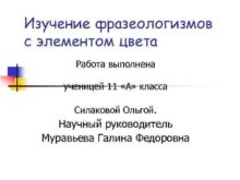 Изучение фразеологизмов с элементом цвета Работа выполнена ученицей