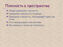 Плоскость в пространстве Общее уравнение плоскости Уравнение плоскости
