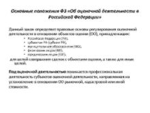 Основные положения ФЗ Об оценочной деятельности в Российской