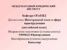 МЕЖДУНАРОДНЫЙ ЮРИДИЧЕСКИЙ ИНСТИТУТ Кафедра ОГи ЕНД Дисциплина