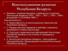 Конституционное развитие Республики Беларусь Значение основные принципы особенности