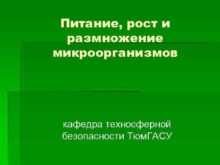 Питание рост и размножение микроорганизмов кафедра техносферной безопасности