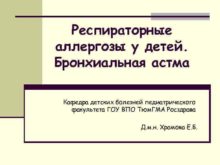 Респираторные аллергозы у детей Бронхиальная астма Кафедра детских