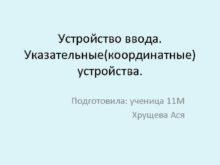 Устройство ввода Указательные координатные устройства Подготовила ученица 11 М