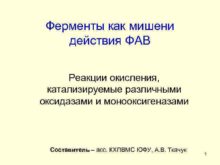 Ферменты как мишени действия ФАВ Реакции окисления катализируемые