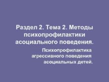 Раздел 2 Тема 2 Методы психопрофилактики асоциального поведения