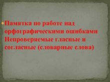 Памятка по работе над орфографическими ошибками Непроверяемые