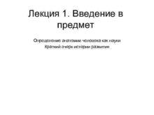 Лекция 1 Введение в предмет Определение анатомии человека