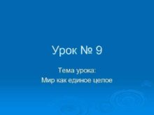 Урок 9 Тема урока Мир как единое