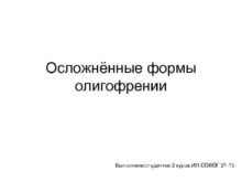 Осложнённые формы олигофрении Выполнила студентка 2 курса ИП