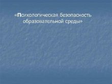Психологическая безопасность образовательной среды Безопасность это