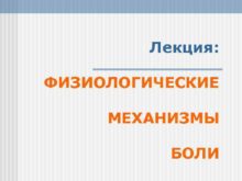 Лекция ФИЗИОЛОГИЧЕСКИЕ МЕХАНИЗМЫ БОЛИ ПЛАН ЛЕКЦИИ n