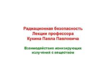 Радиационная безопасность Лекции профессора Кукина Павловича Взаимодействие ионизирующих