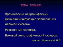 ТЕМА ЛЕКЦИИ Хронические нейроинфекции Демиелинизирующие заболевания нервной системы