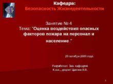 Кафедра Безопасность Жизнедеятельности Занятие 4 Тема Оценка