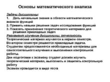 Основы математического анализа Задачи дисциплины 1 Дать начальные