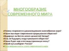 МНОГООБРАЗИЕ СОВРЕМЕННОГО МИРА Почему сохраняется цивилизационное многообразие мира