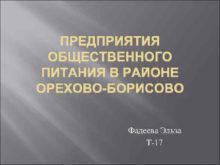 ПРЕДПРИЯТИЯ ОБЩЕСТВЕННОГО ПИТАНИЯ В РАЙОНЕ ОРЕХОВО-БОРИСОВО Фадеева Эльза