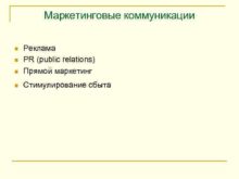 Маркетинговые коммуникации n Реклама PR public relations Прямой