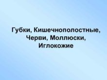 Губки Кишечнополостные Черви Моллюски Иглокожие План повторения
