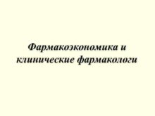 Фармакоэкономика и клинические фармакологи Главный клинический фармаколог