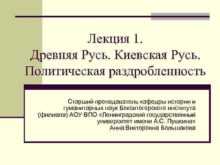 Лекция 1 Древняя Русь Киевская Русь Политическая раздробленность