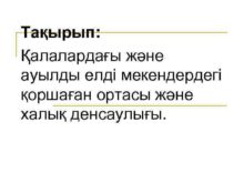 Тақырып Қалалардағы және ауылды елді мекендердегі қоршаған ортасы