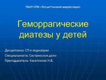 ГБОУ СПО Тольяттинский медколледж Геморрагические диатезы у детей