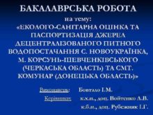 БАКАЛАВРСЬКА РОБОТА на тему ЕКОЛОГО-САНІТАРНА ОЦІНКА ТА ПАСПОРТИЗАЦІЯ