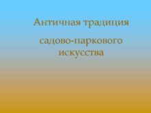 Античная традиция садово-паркового искусства Римская традиция была