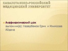 КАЗАХСТАНСКО-РОССИЙСКИЙ МЕДИЦИНСКИЙ УНИВЕРСИТЕТ Анафилактический шок выполнил а Назарбеков Ерик