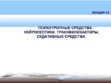 ЛЕКЦИЯ 12 ПСИХОТРОПНЫЕ СРЕДСТВА НЕЙРОЛЕПТИКИ ТРАНКВИЛИЗАКТОРЫ СЕДАТИВНЫЕ