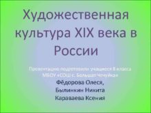 Художественная культура XIX века в России Презентацию подготовили