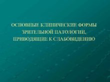 ОСНОВНЫЕ КЛИНИЧЕСКИЕ ФОРМЫ ЗРИТЕЛЬНОЙ ПАТОЛОГИИ ПРИВОДЯЩИЕ К СЛАБОВИДЕНИЮ