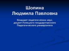 Шопина Людмила Павловна Кандидат педагогических наук доцент Липецкого