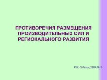 ПРОТИВОРЕЧИЯ РАЗМЕЩЕНИЯ ПРОИЗВОДИТЕЛЬНЫХ СИЛ И РЕГИОНАЛЬНОГО РАЗВИТИЯ Р