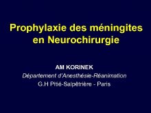 Prophylaxie des méningites en Neurochirurgie AM KORINEK Département