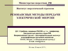 Министерство энергетики РФ Институт энергетической стратегии РЕЗОНАНСНЫЕ МЕТОДЫ
