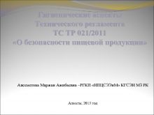 Гигиенические аспекты Технического регламента ТС ТР 021 2011 О