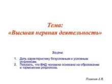 Тема Высшая нервная деятельность Задачи 1 Дать характеристику