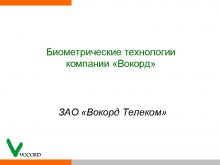 Биометрические технологии компании Вокорд ЗАО Вокорд Телеком