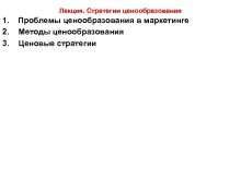 Лекция Стратегии ценообразования 1 2 3 Проблемы ценообразования